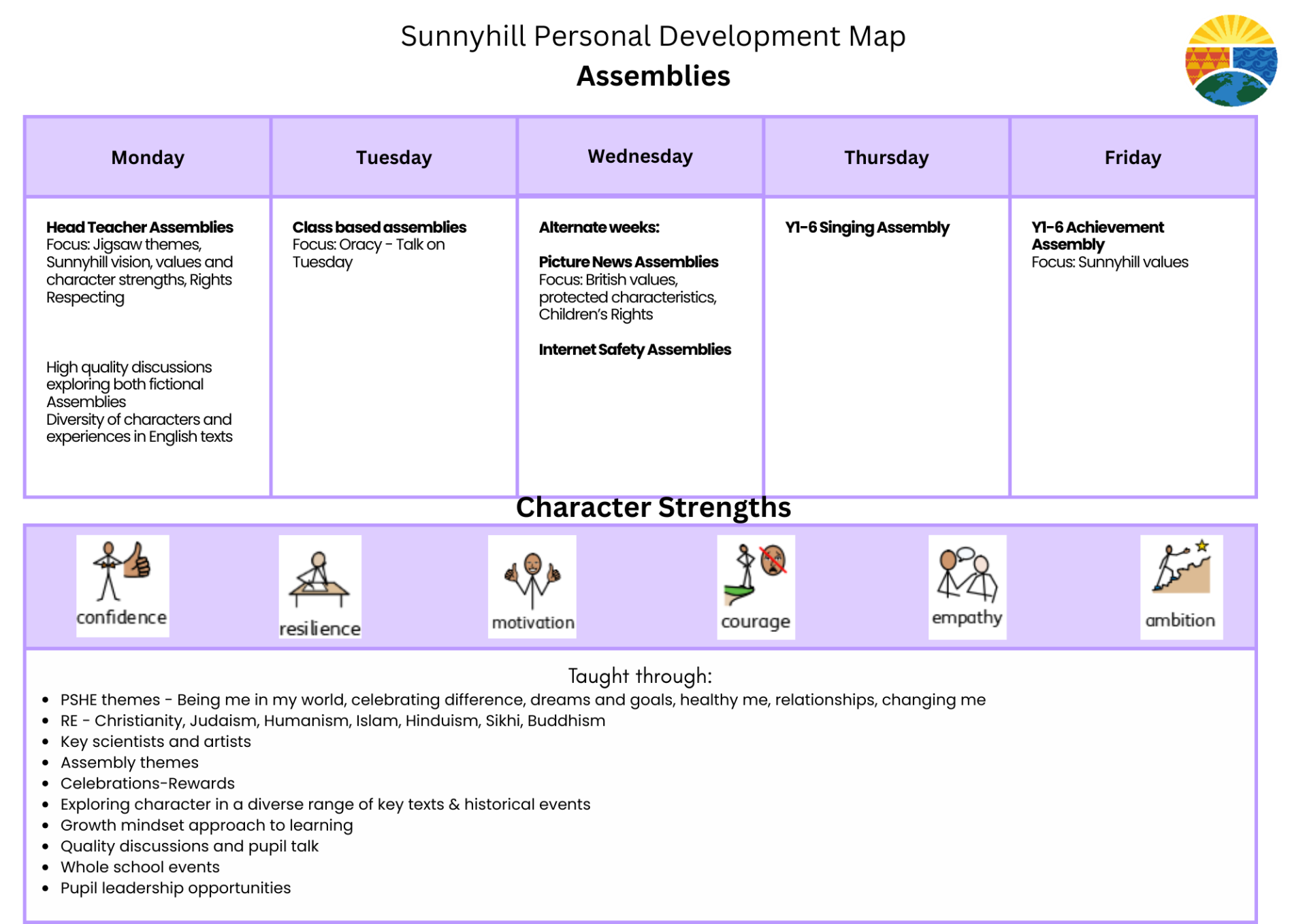 At Sunnyhill, our personal development curriculum has, at its foundation, a structured programme of PSHE and RE lessons timetabled weekly from Reception to Year 6.